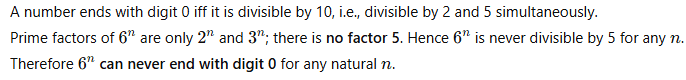 Q5. Check whether 6n can end with the digit 0 for any natural number n.